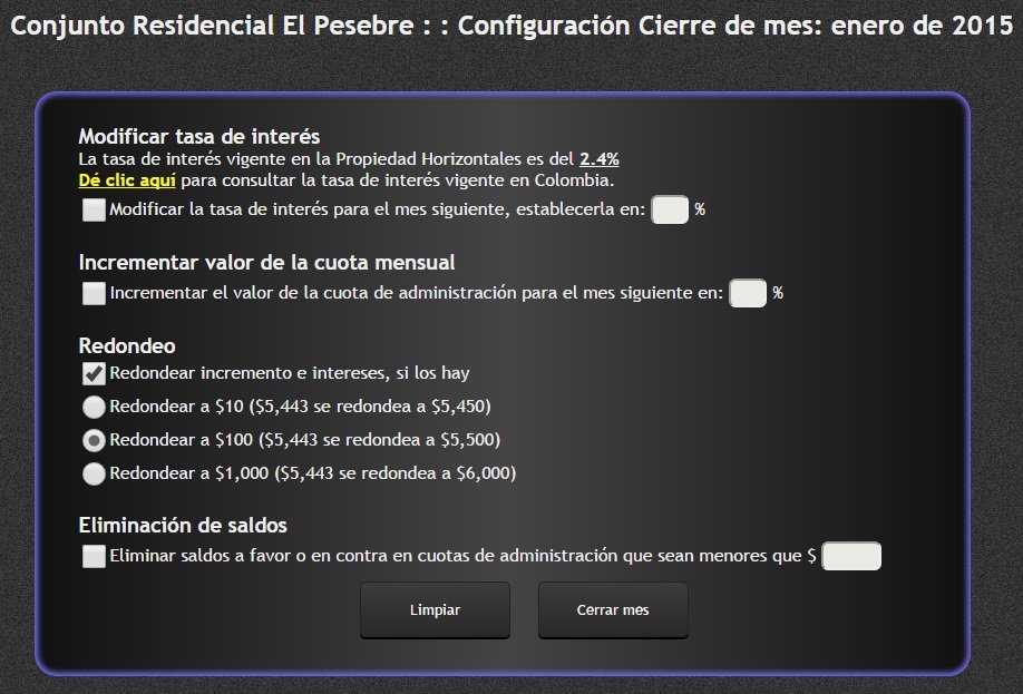 - Calcula el interés por mora, en caso de presentarse mora en el pago de cuotas de administración.